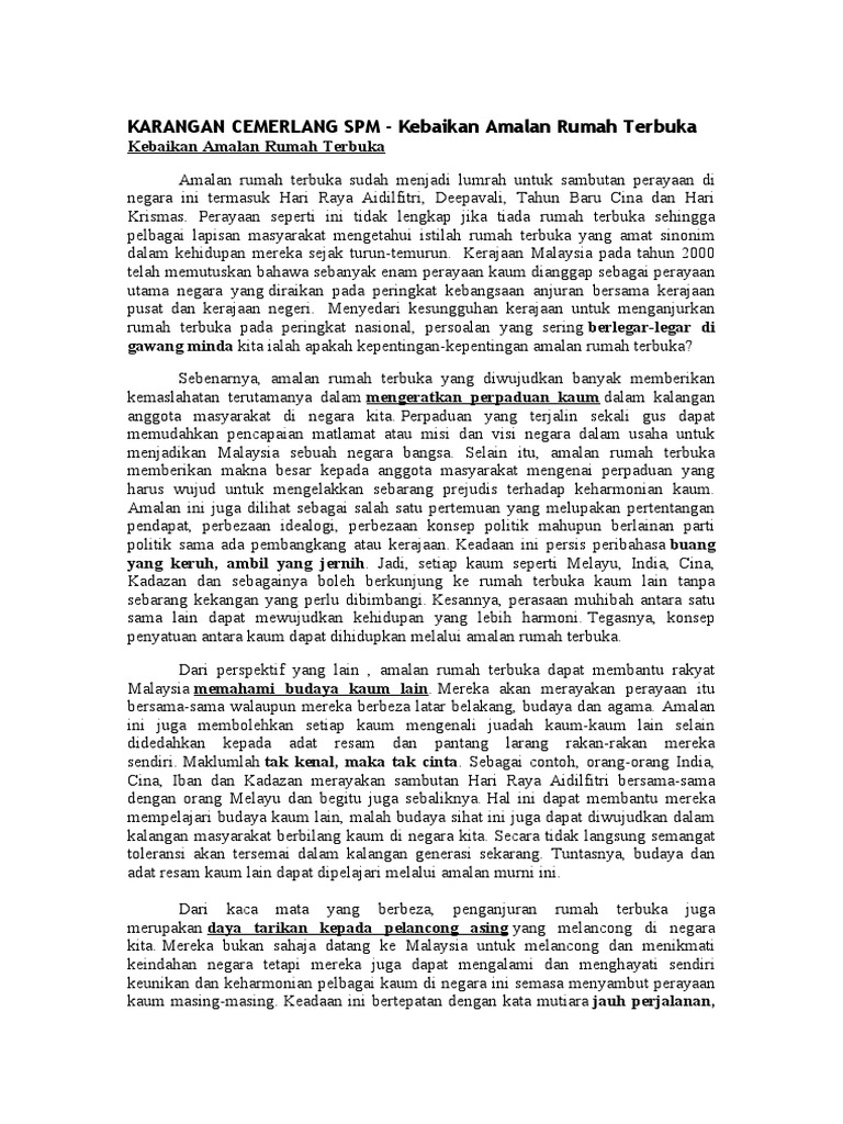 Karangan Cemerlang Spm Kebaikan Atau Impak Rumah Terbuka Pdf